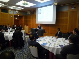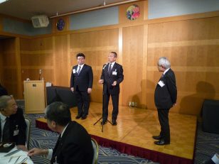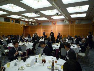 横浜ナビオス 2階カナール(横浜市中区新港2-1-1)にて、役員会・講演会・懇親会を開催しました。講演会後の懇親会では斉藤昌喜会長よりご挨拶、加藤健平副会長の乾杯の音頭でスタートし、その後、多くの会員の方々からのご挨拶やトークが続きました。最後は山田智也副会長の音頭による締めで本例会は終了しました。