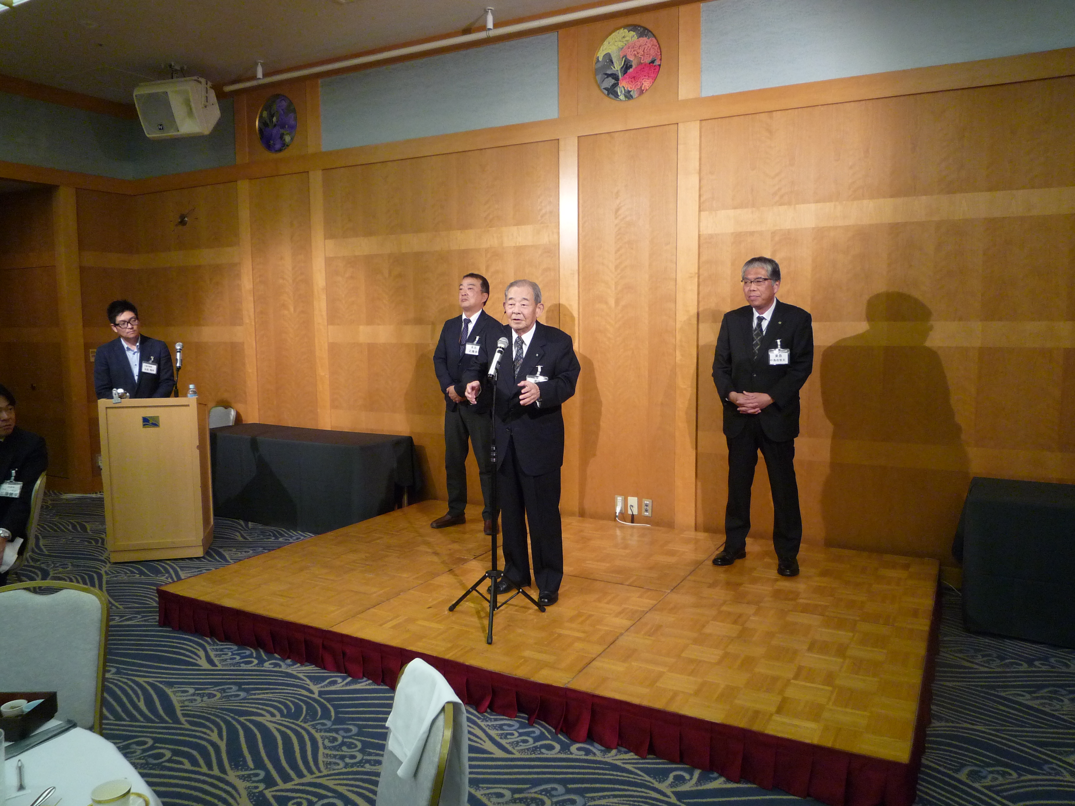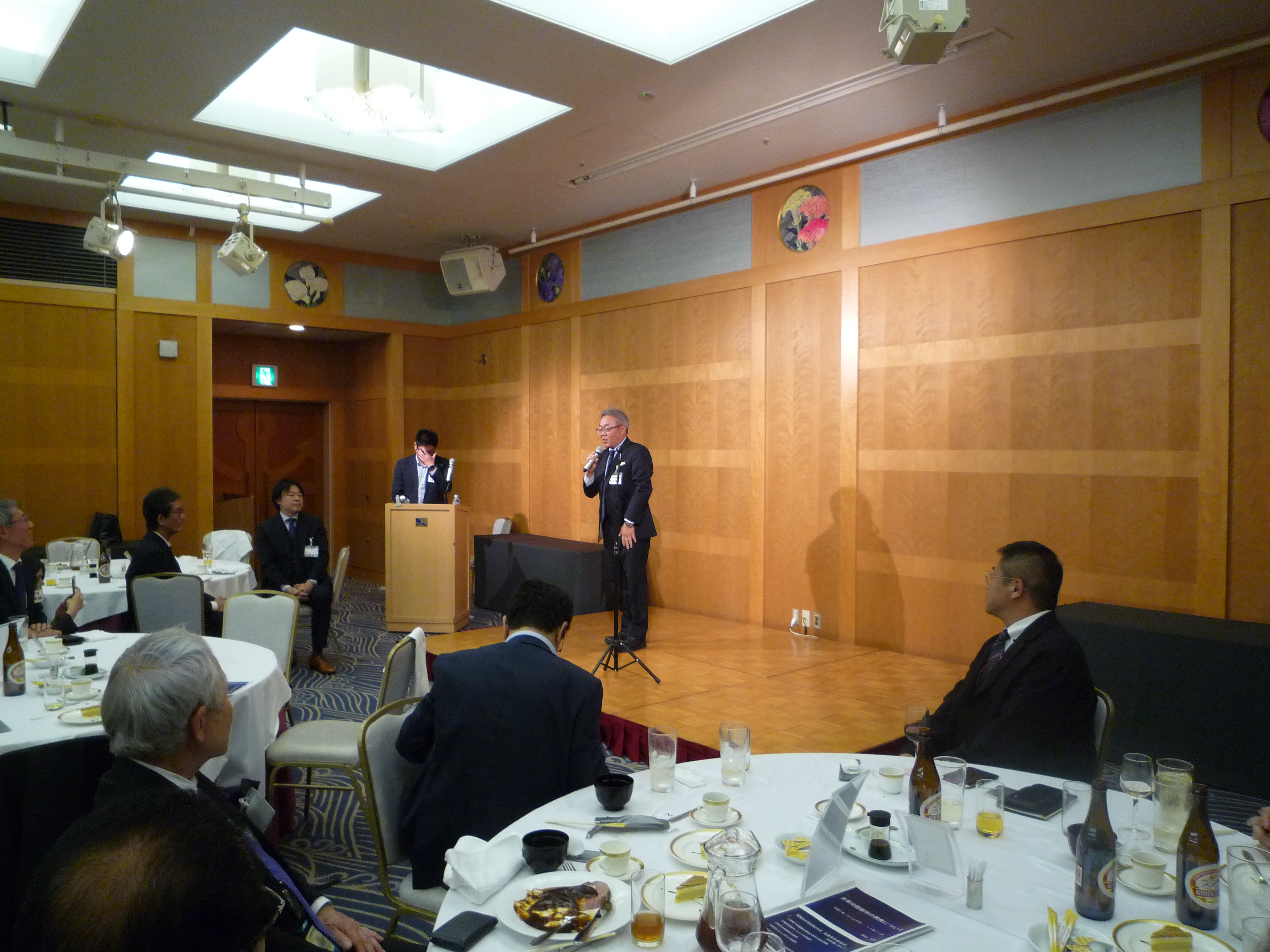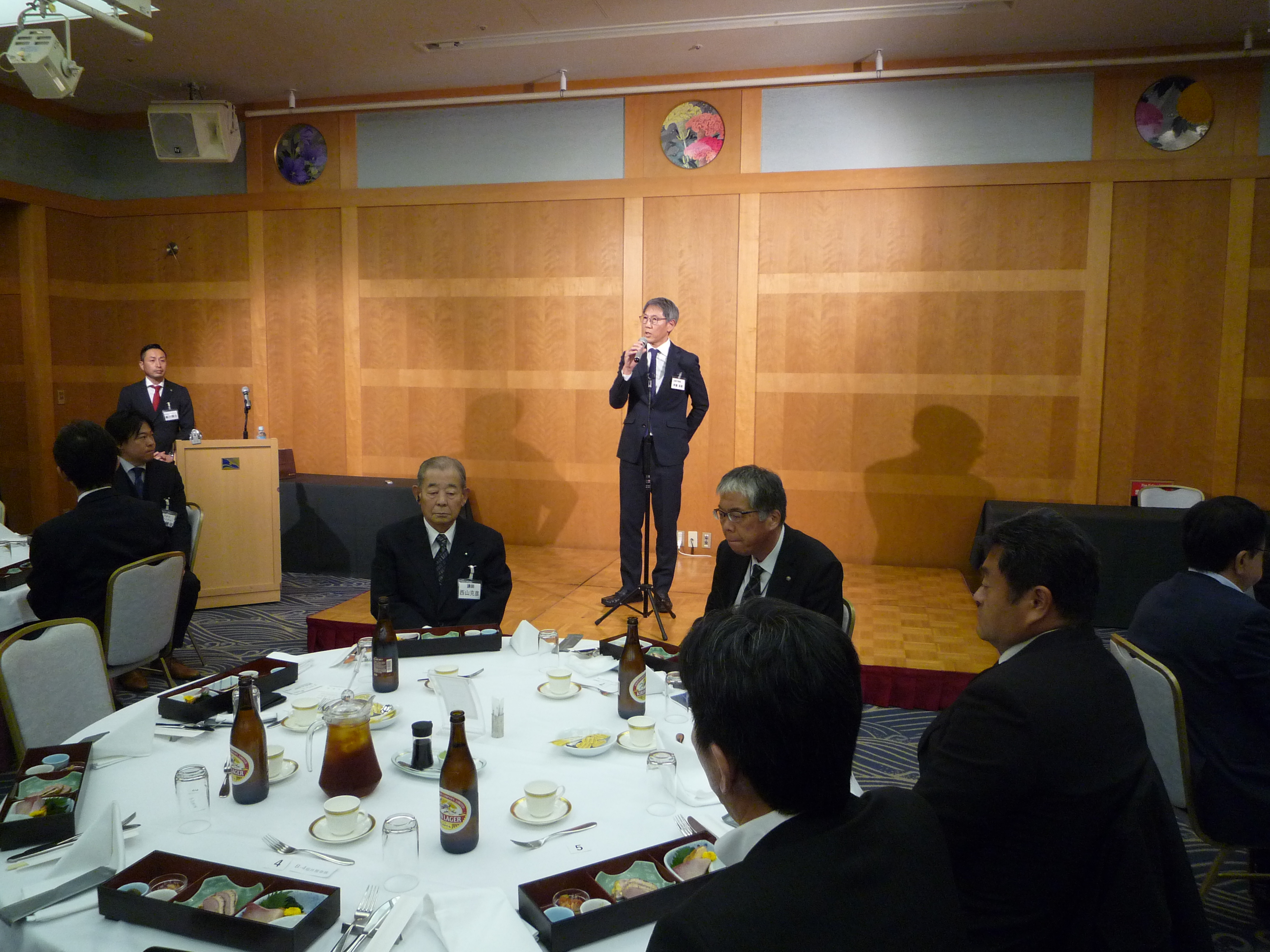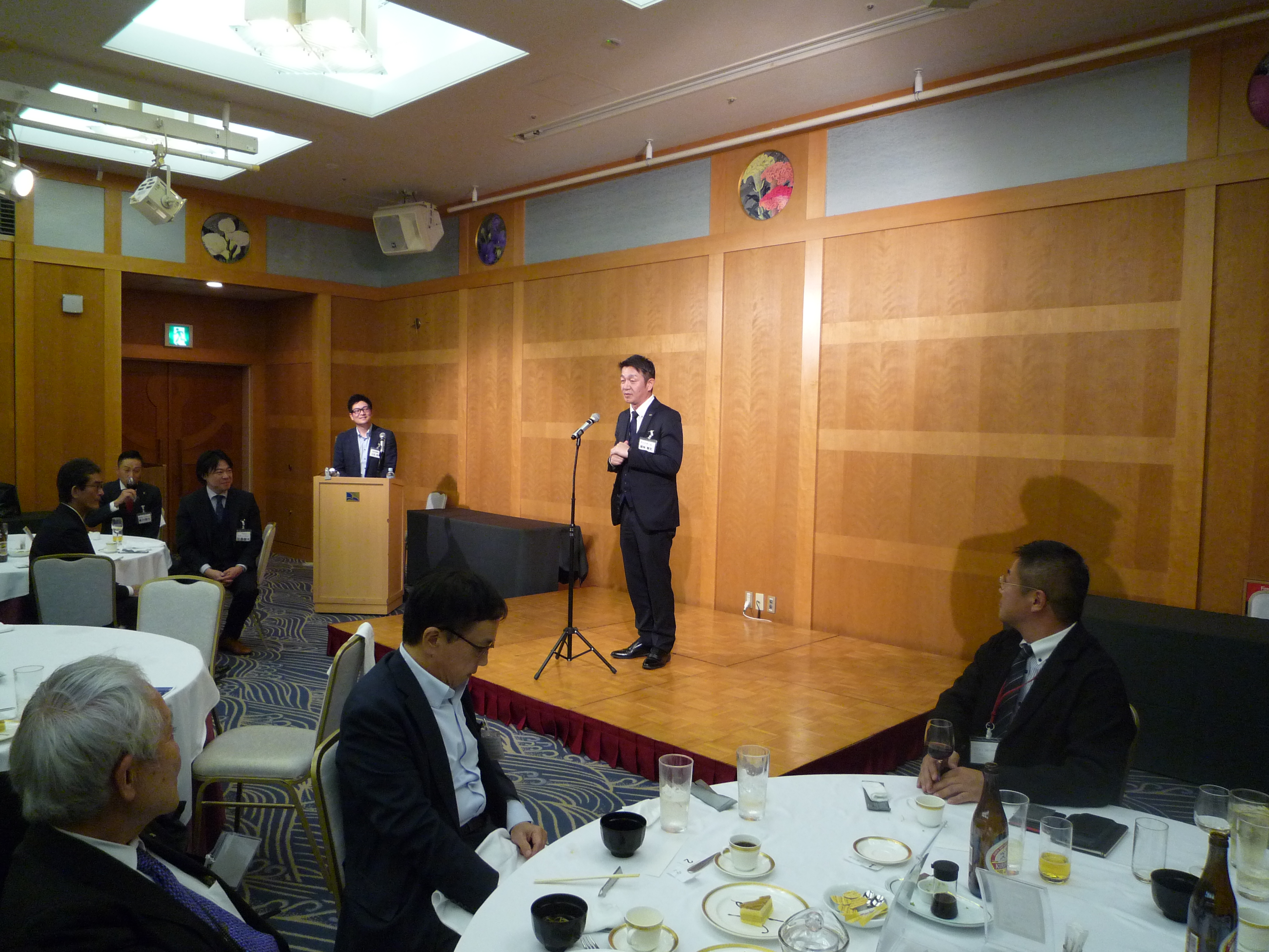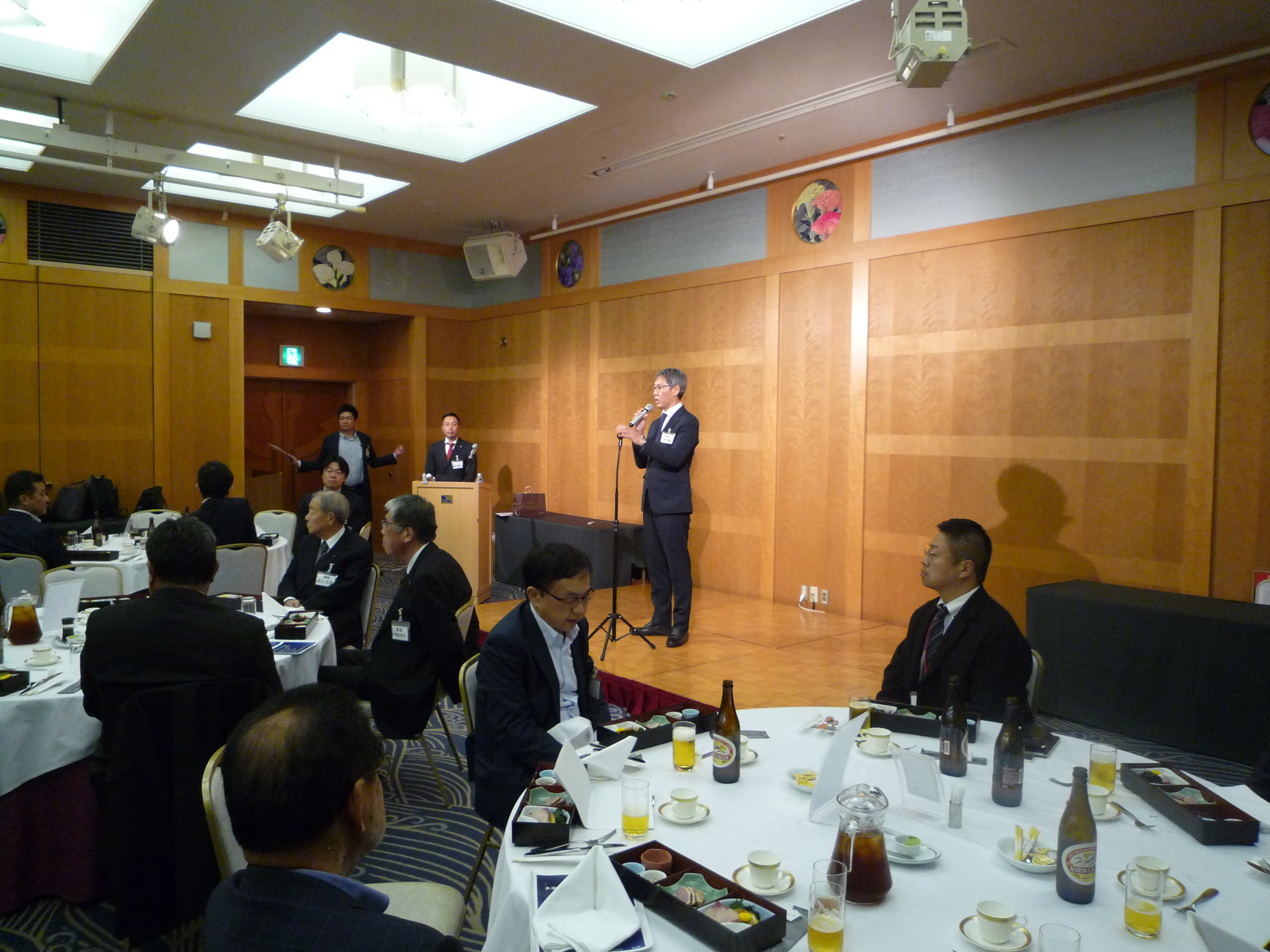 横浜ナビオス 2階カナール(横浜市中区新港2-1-1)にて、役員会・講演会・懇親会を開催しました。講演会後の懇親会では斉藤昌喜会長よりご挨拶、加藤健平副会長の乾杯の音頭でスタートし、その後、多くの会員の方々からのご挨拶やトークが続きました。最後は山田智也副会長の音頭による締めで本例会は終了しました。