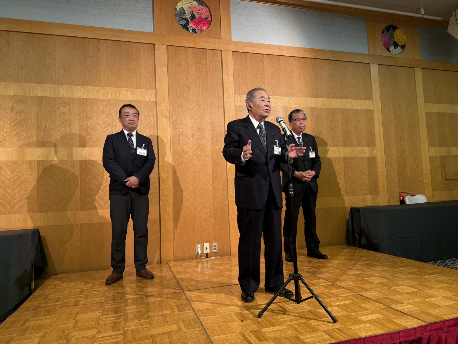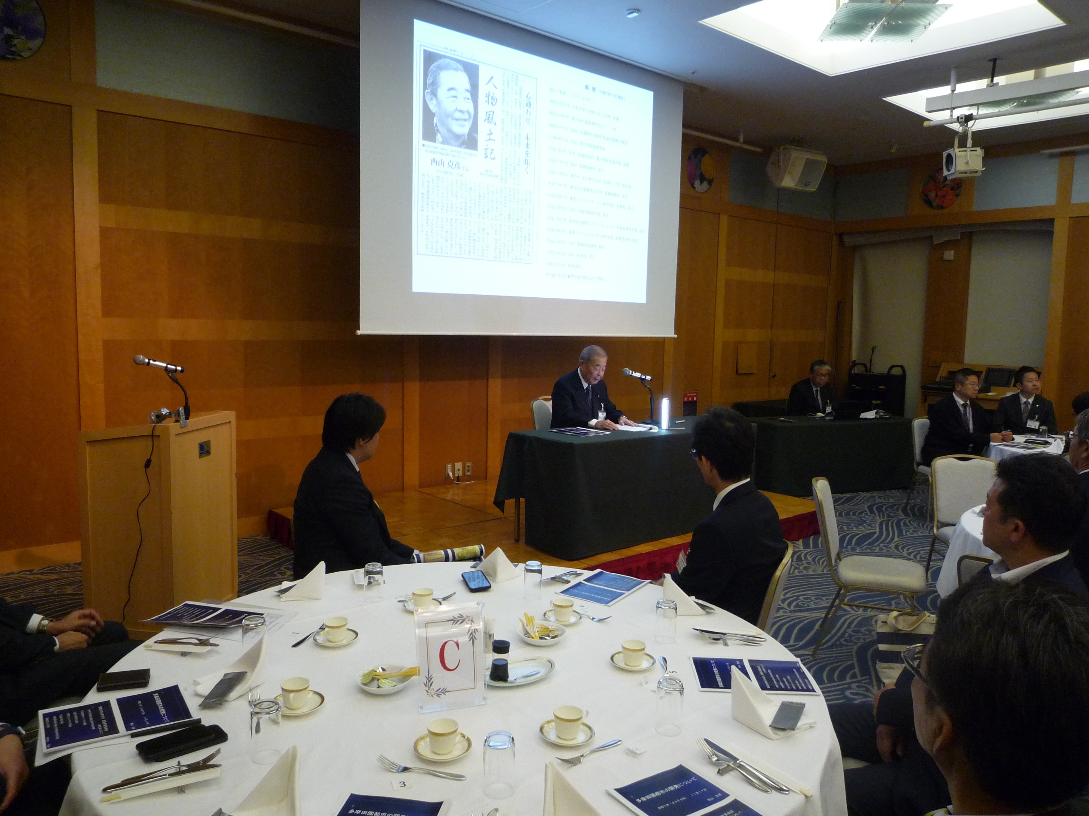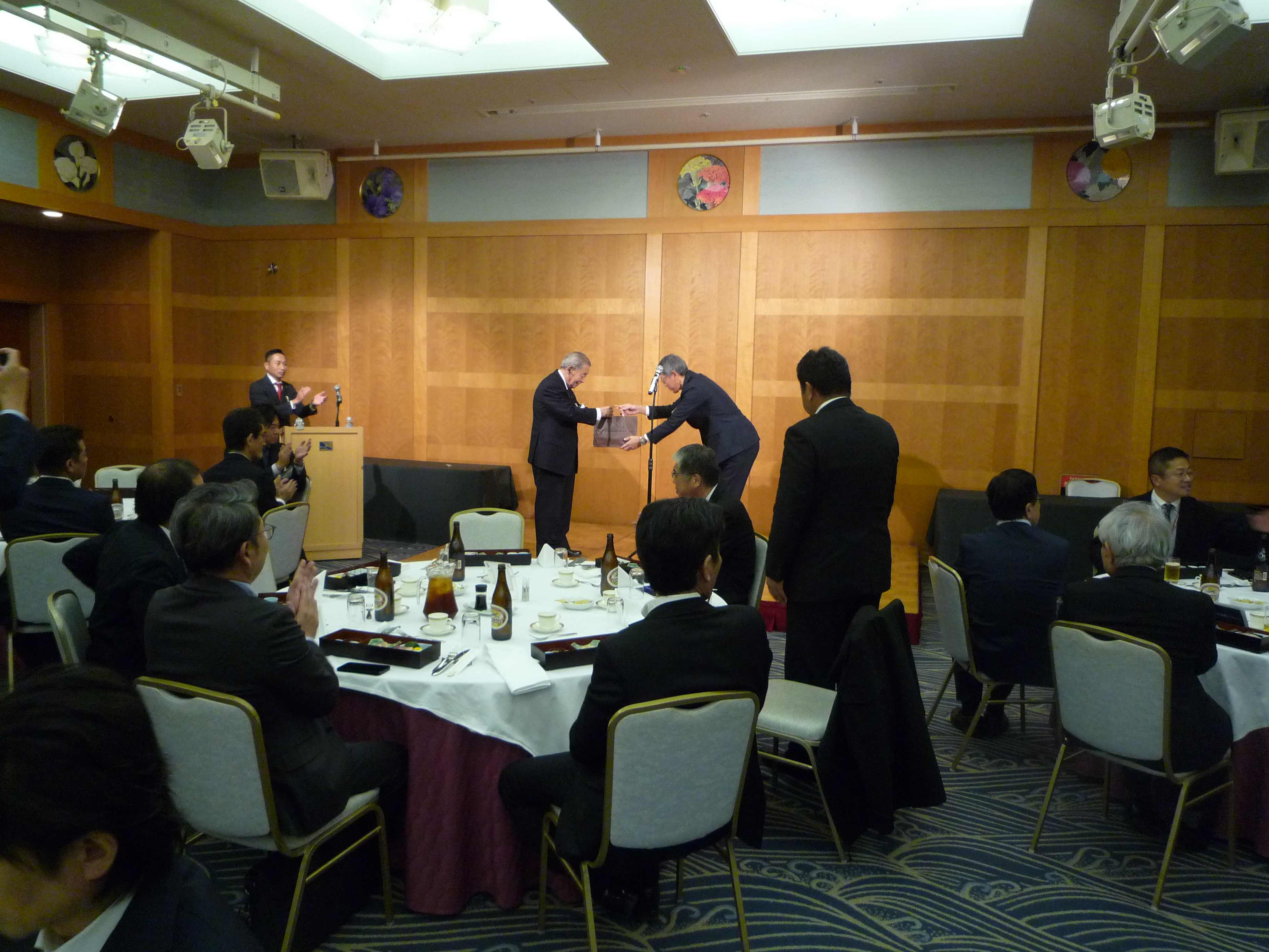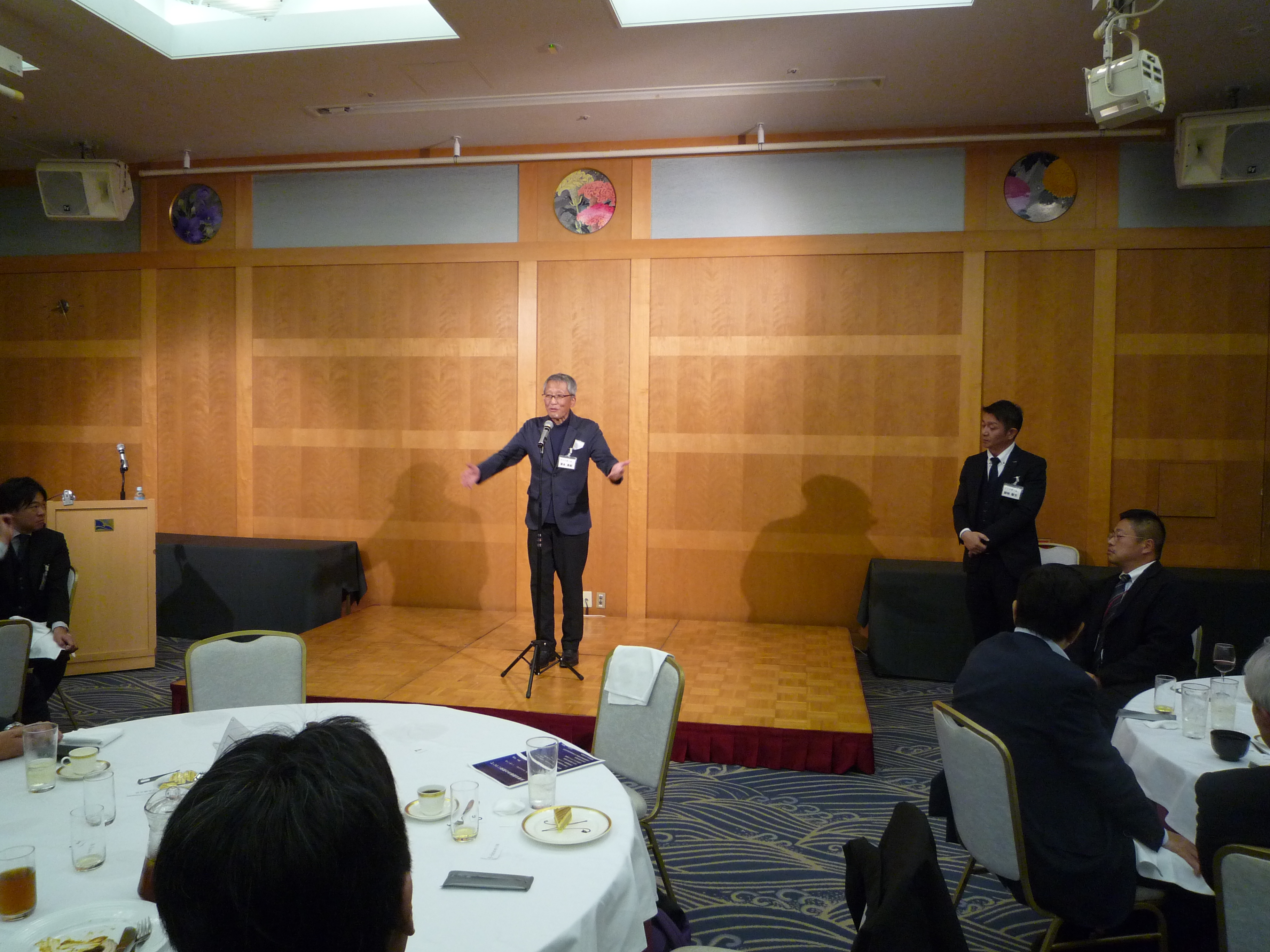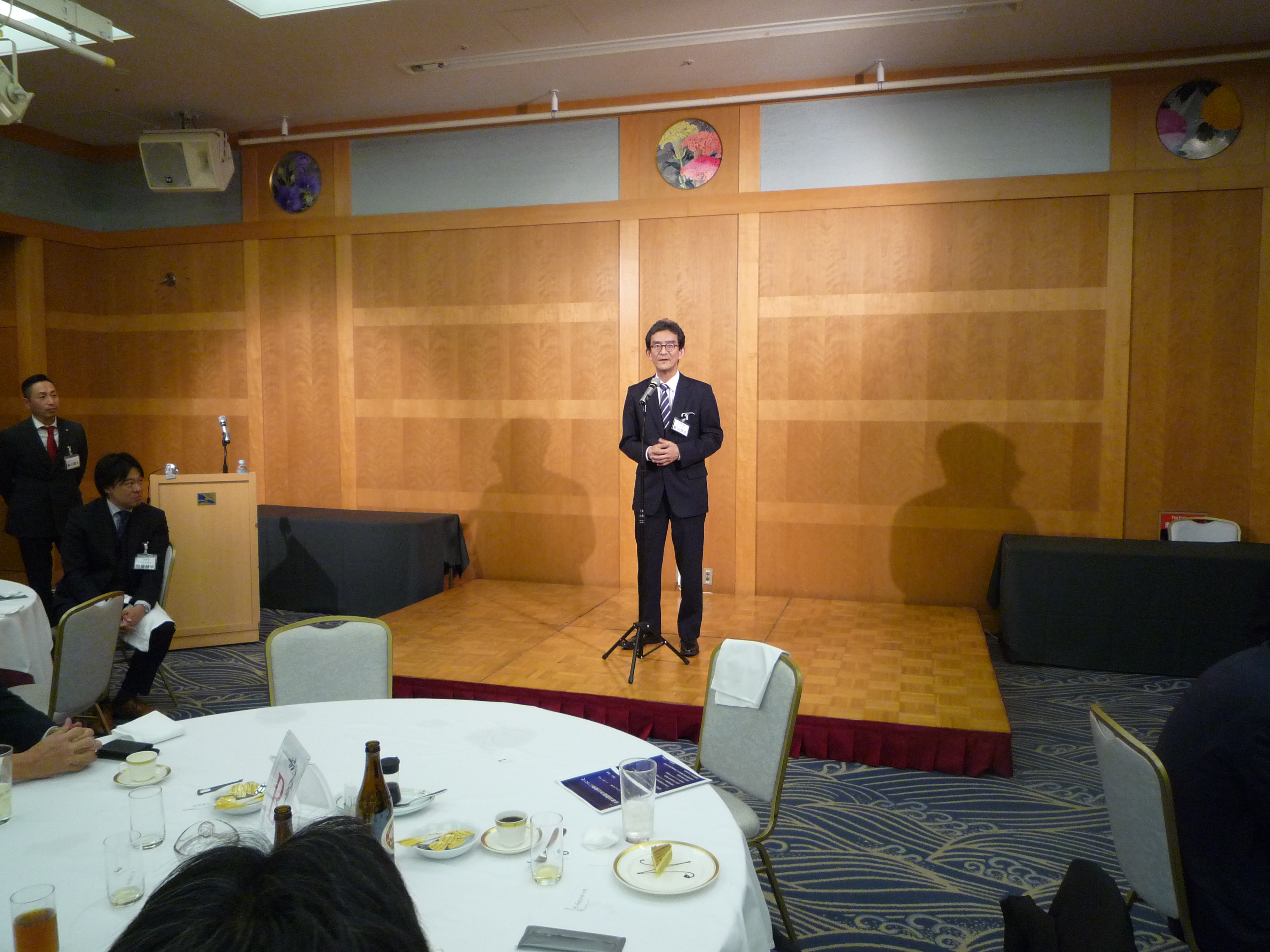 横浜ナビオス 2階カナール(横浜市中区新港2-1-1)にて、役員会・講演会・懇親会を開催しました。講演会後の懇親会では斉藤昌喜会長よりご挨拶、加藤健平副会長の乾杯の音頭でスタートし、その後、多くの会員の方々からのご挨拶やトークが続きました。最後は山田智也副会長の音頭による締めで本例会は終了しました。