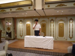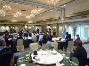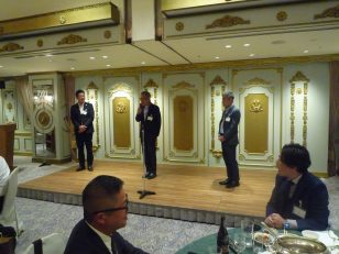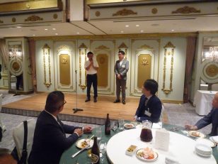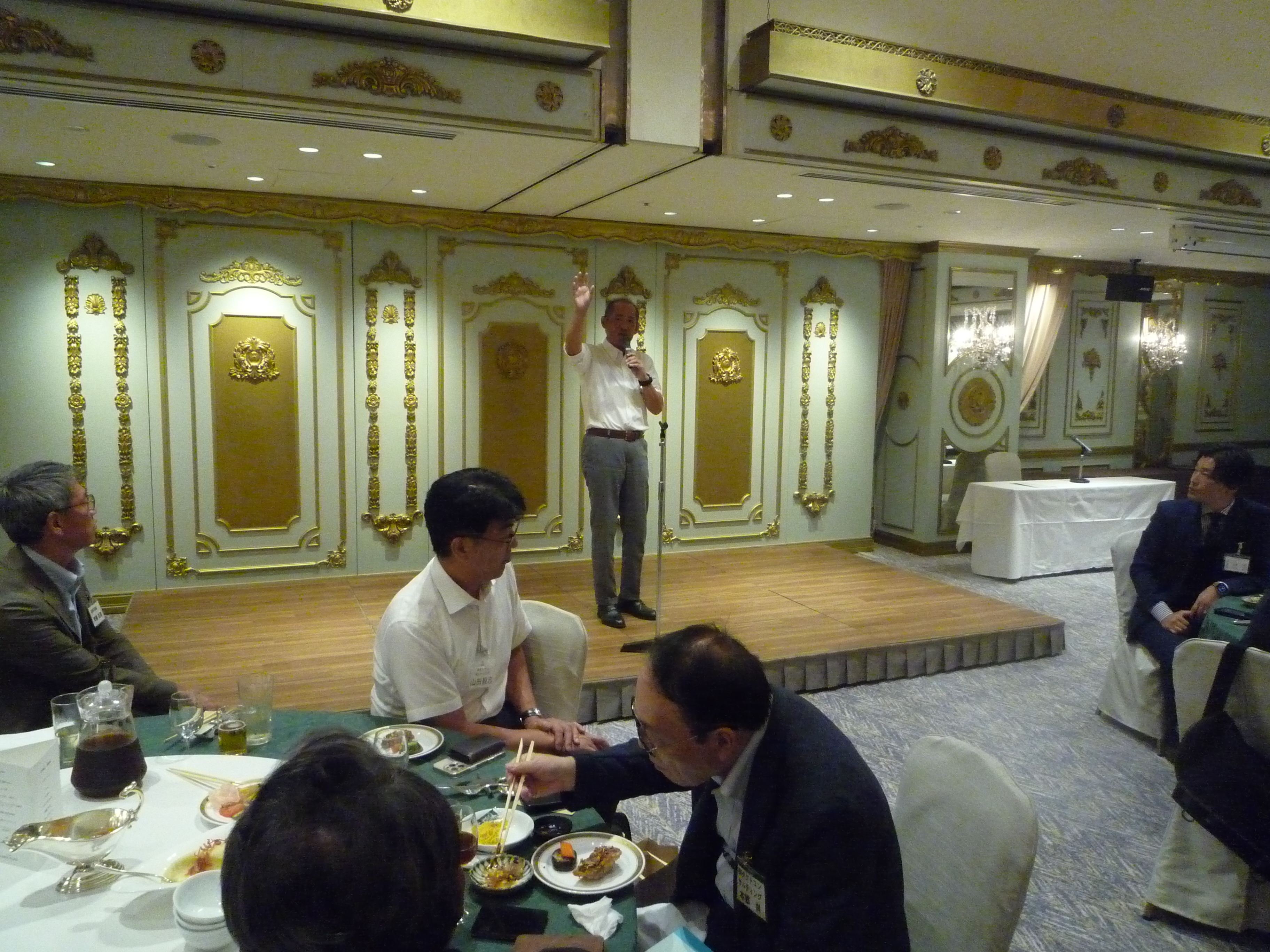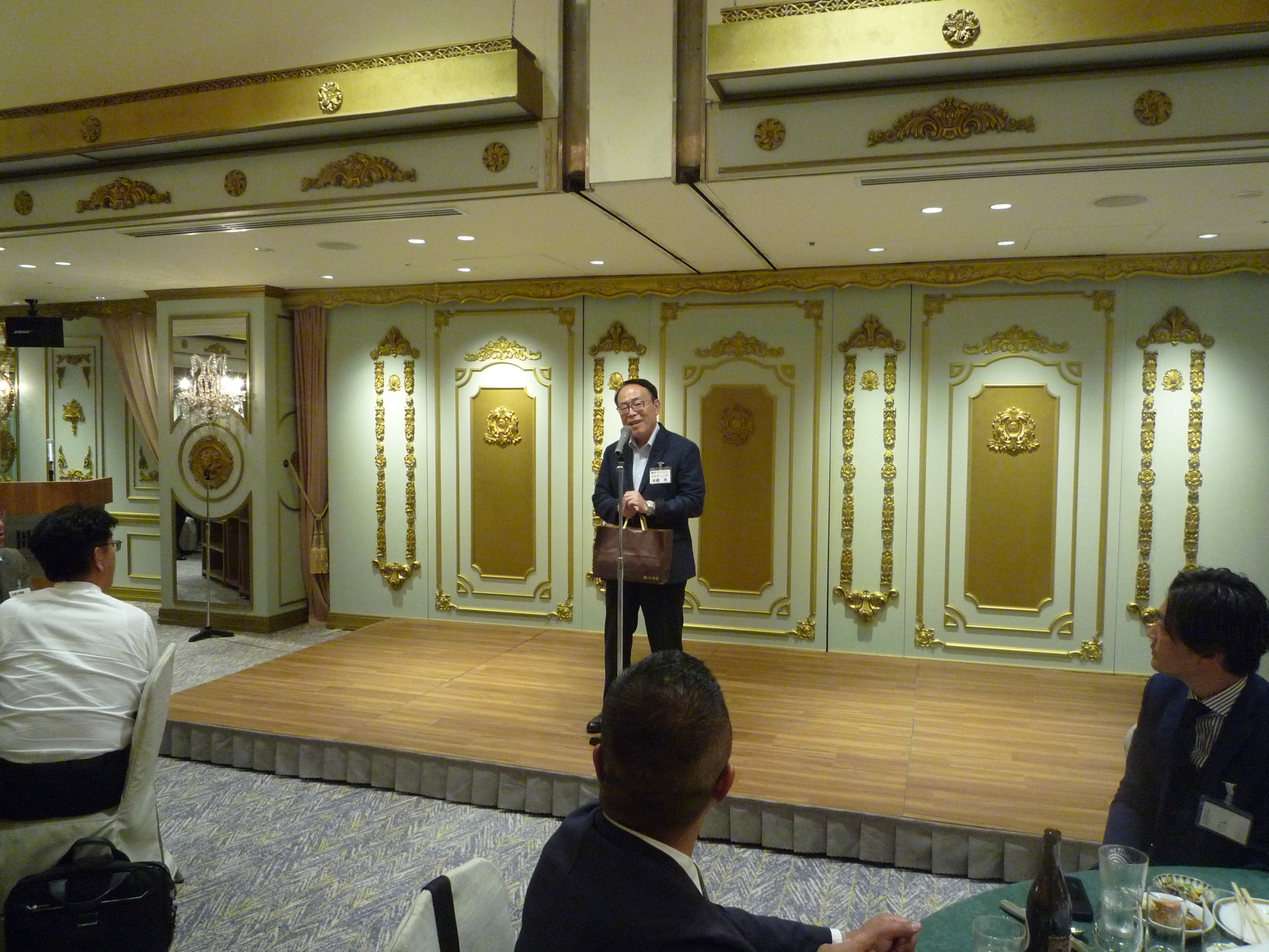演会後の懇親会では斉藤昌喜会長よりご挨拶、加藤健平副会長の乾杯の音頭でスタートし、